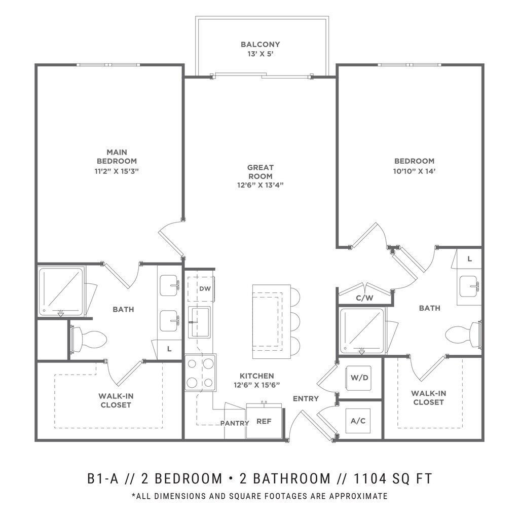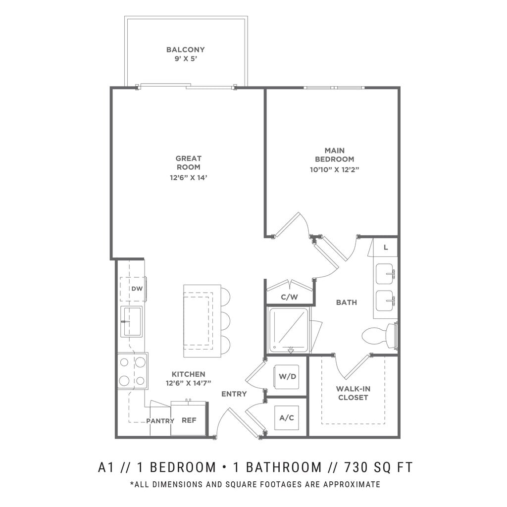 1 Bed, 1 Bath, 773 sq ftAvailable NowLargest 1 BedroomThis is the largest 1 Bedroom at this PropertyModel Gallery