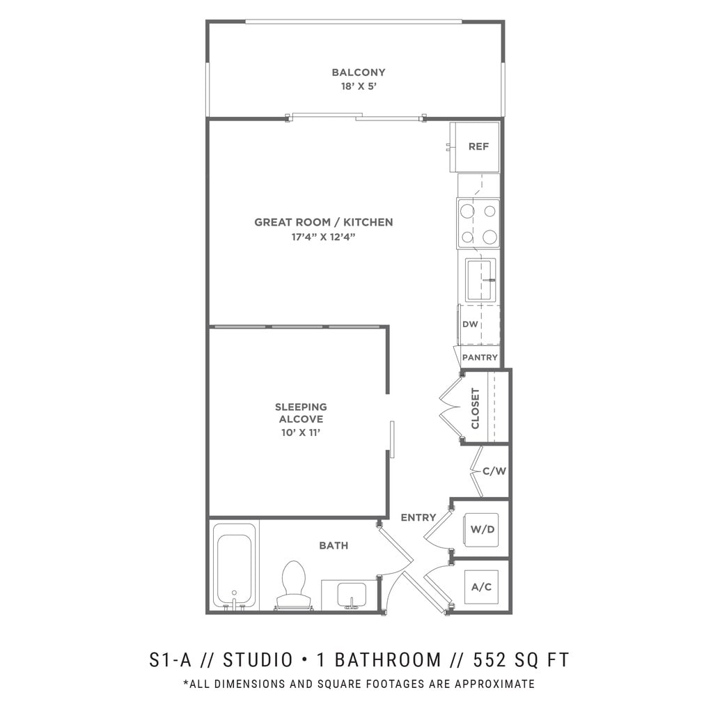 Apartment Model: S1-ACall For RatesStudio, 1 Bath, 552 sq ftUnavailable![]()