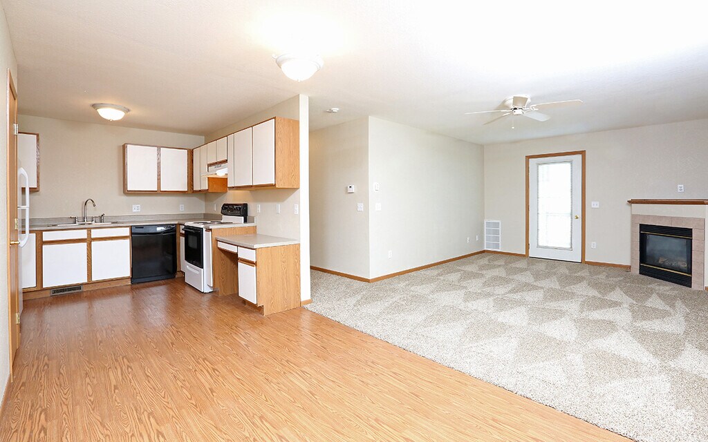 Welcome to the Riverview Apartments where residents can enjoy all the benefits of both apartment living and small town charm. The Riverview Apartments offer a choice of two or three bedroom homes with floorplans offering up to 1170 square feet of living space. These homes are warm and welcoming with a great list of amenities such as a fireplace (2nd floor homes), disposal, air-conditioning, a detached garage, built-in storage and well-equipped kitchen with white cabinets. Riverview Apartments welcomes both cats and dogs and is conveniently located right next to Pizza Ranch. A range of services are close by such as the Tea Area Middle School and Tea Area Legacy Elementary, while downtown Sioux Falls with an eclectic mix of cafes and restaurants is only a short drive away.