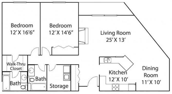 2 Beds, 2 Baths, 1328 sq ftLargest 2 BedroomThis is the largest 2 Bedroom at this PropertyModel Gallery