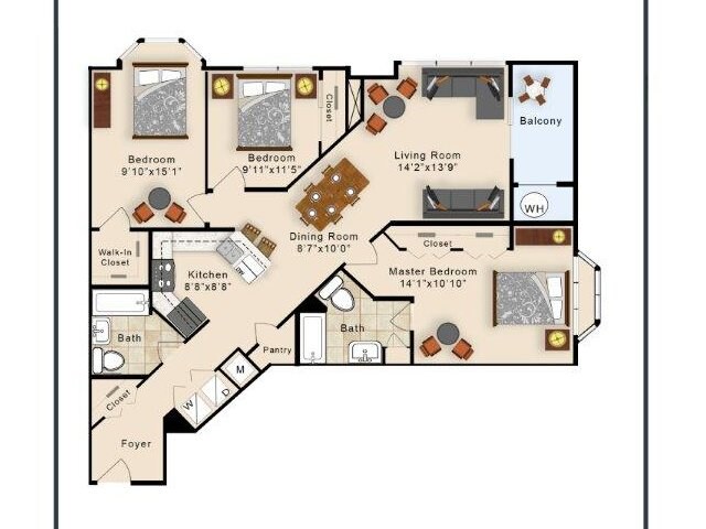 1 Bed, 1 Bath, 972 sq ftAvailable NowLargest 1 BedroomThis is the largest 1 Bedroom at this PropertyModel Gallery