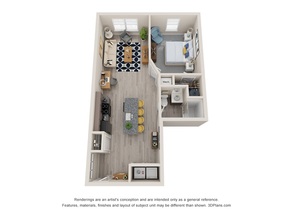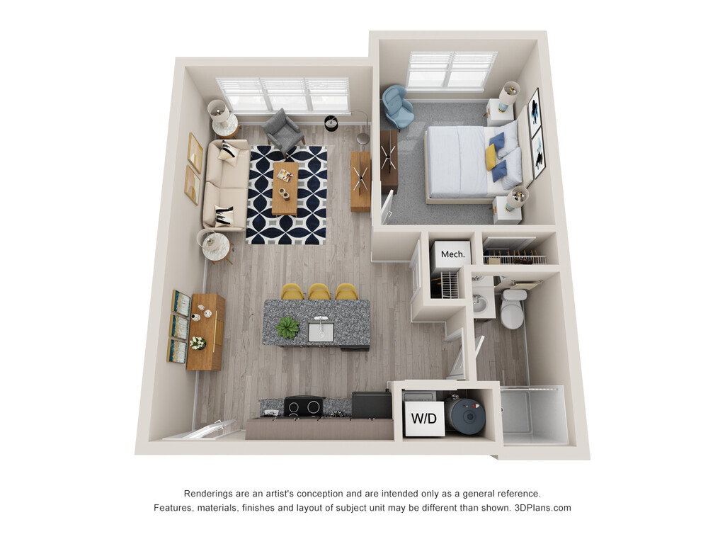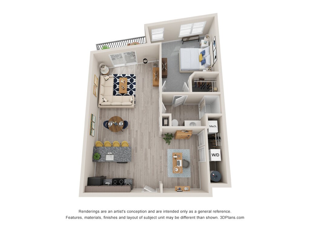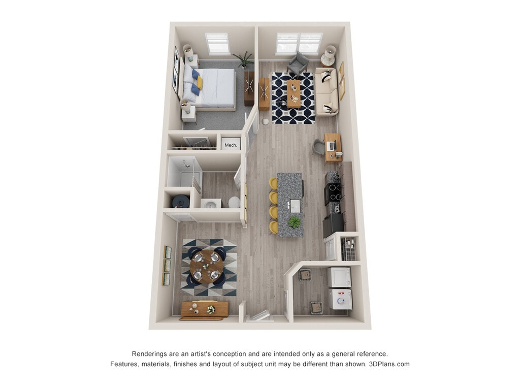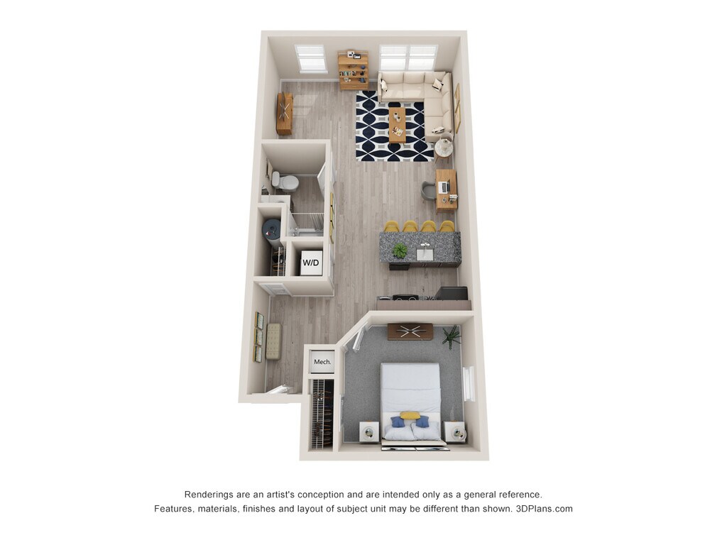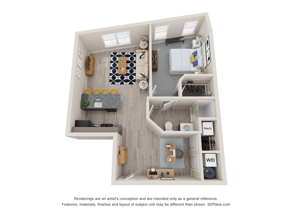 1 Bed, 1 Bath, 677 sq ftModel Gallery