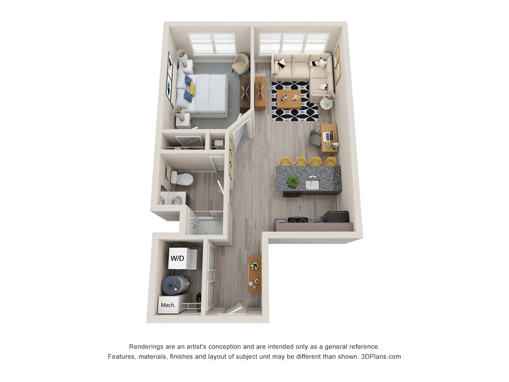 1 Bed, 1 Bath, 592 sq ftModel Gallery