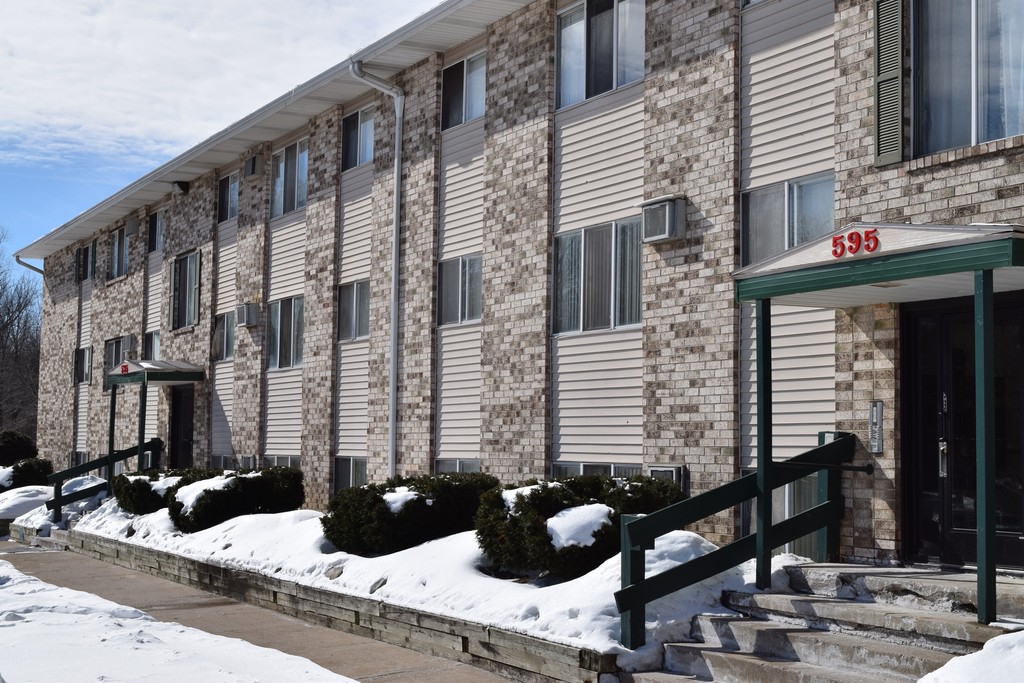 Riverwalk Apartments are housed in a three story building with great views of the river and walking paths across the street. The property is landscaped with a large lawn, picnic area, plenty of parking and carports available. There is a laundry facility inside the building and interior building entries to the apartments. Units are spacious, some have patios and balconies. Upgraded units are larger and/or have wood floors and stainless steel appliances. Quiet neighborhood with public playground a block away.