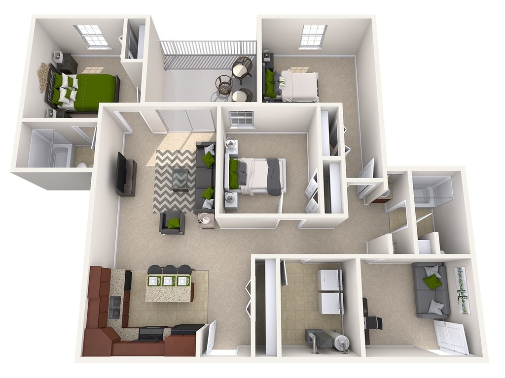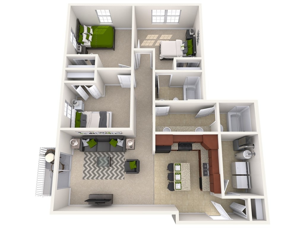 3 Beds, 2 Baths, 1085-1230 sq ftModel Gallery