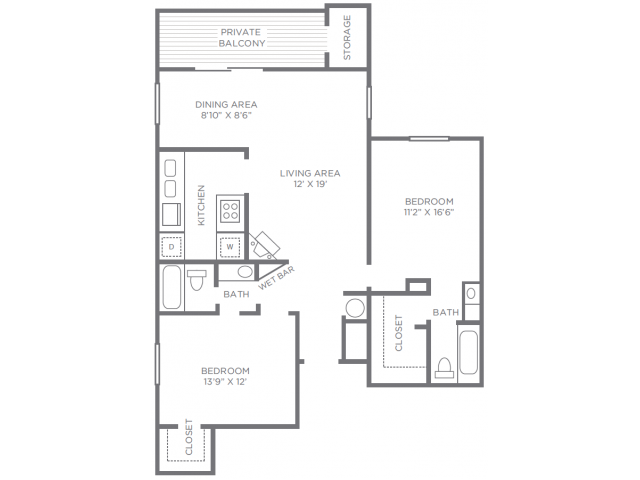 1 Bed, 1 Bath, 768 sq ftAvailable NowLargest 1 BedroomThis is the largest 1 Bedroom at this PropertyModel Gallery