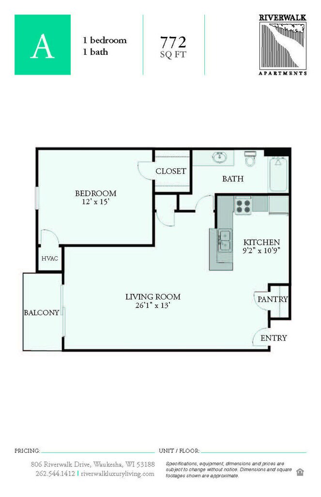 Riverwalk Apartments offers 1 to 2 Bedroom apartments starting from $1,250 and having 772–1,018 sq ft. Here is the current pricing and availability: