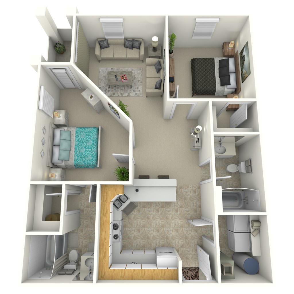 2 Beds, 2 Baths, 750 sq ftModel Gallery