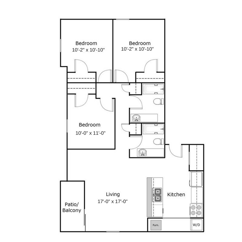 2 Bedroom Traditional - Floorplan 2 3 Bedrooms