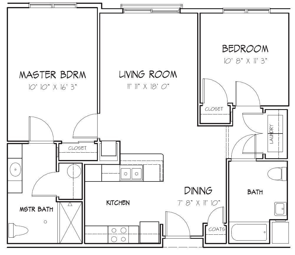 Apartment Model: 1BR-DH$2,1601 Bedroom, 1 Bath, 989 sq ftAvailable December 5, 2025![]()