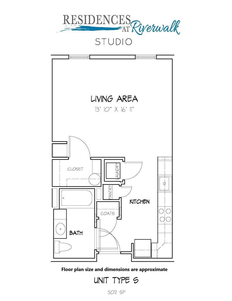 Studio to 2 Bedroom Apartments at Riverwalk currently range from $2,160 to $2,555