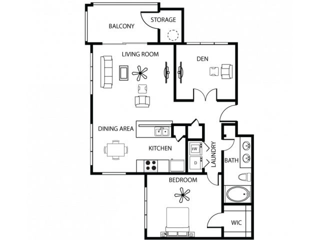 Amber 3 - 1 Bedroom with Den - Floorplan 1 2 Bedrooms