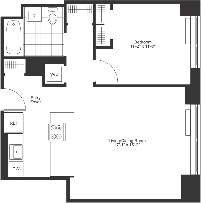 Studio / 1 Bathroom - Floorplan 11 Apartment Unit: 16FApartment Model: Studio / 1 BathroomStudio, 1 Bath, sq ftAvailable December 13, 2025FloorplansPhotos![]()