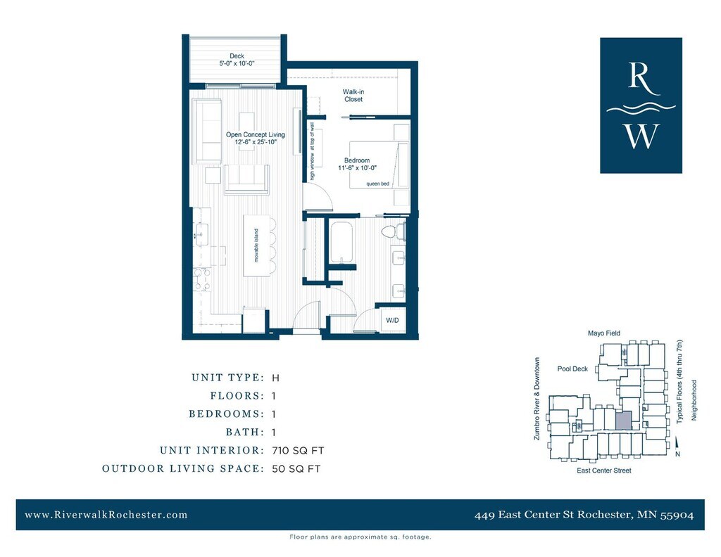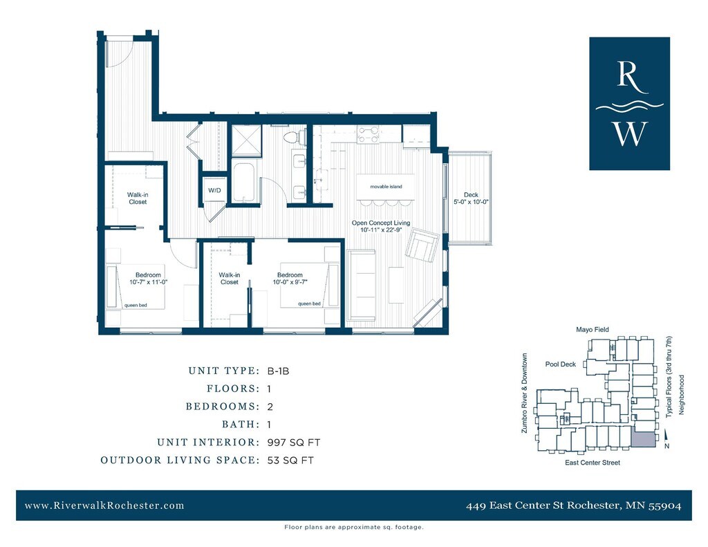 Riverwalk Rochester is located at 449 E Center St near the East Rochester area of Rochester, MN