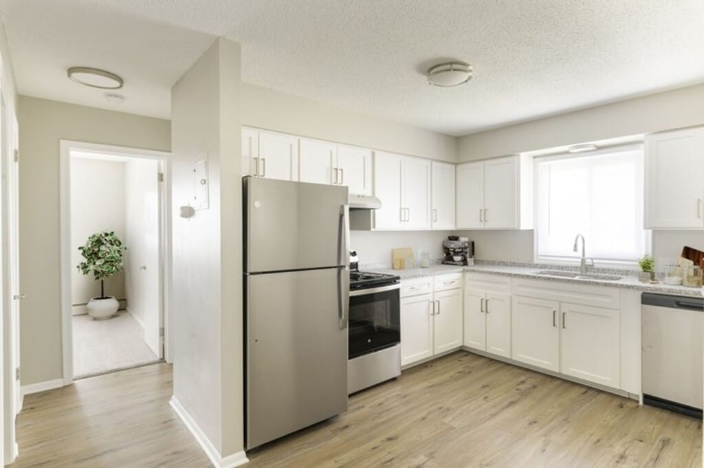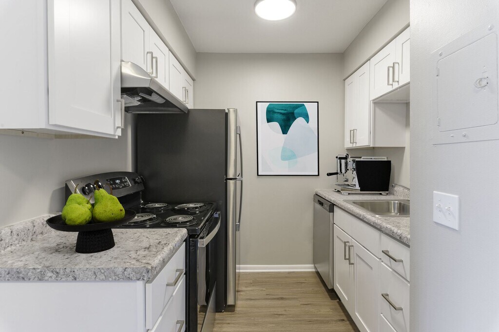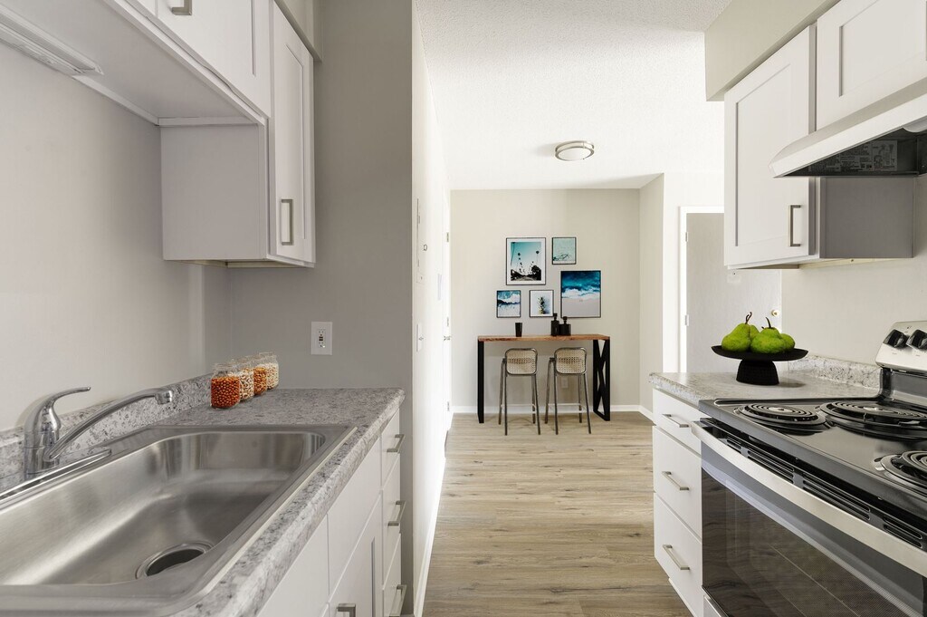 Riverway Apartments, a great place to live with a killer view. Every apartment is updated with modern stainless-steel appliances, sleek walnut wood style flooring, and granite countertops. Our two-bedroom apartments have a large gourmet kitchen for all of your cooking needs! Your apartment is your sanctuary, and we've made sure it's up to date with all the modern comforts you need. Come see for yourself – it's time to upgrade your living space.