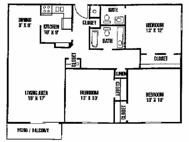 Apartment Model: 3 Beds, 2 baths3 Bedroom, 2 Bath, 1193 sq ftUnavailable3 Beds, 2 baths - Floorplan 1