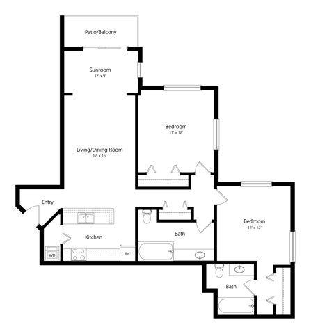 Apartment Model: Floor Plan DFrom $1,9402 Bedroom, 2 Bath, 1104 sq ftAvailable December 12, 2025![]()