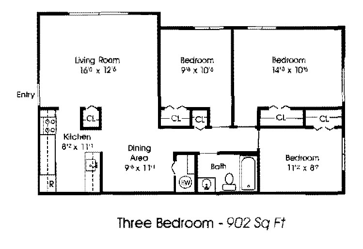 Apartment Model: 3 Beds, 1 bath3 Bedroom, 1 Bath, 1000 sq ftUnavailable3 Beds, 1 bath - Floorplan 1