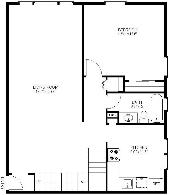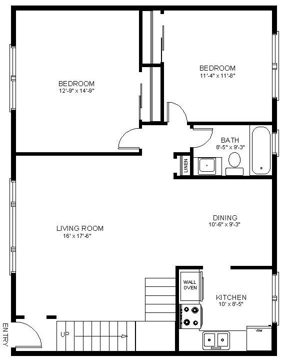1 Bedroom Lg Kitchen W/D - Floorplan 1 2 Bedrooms