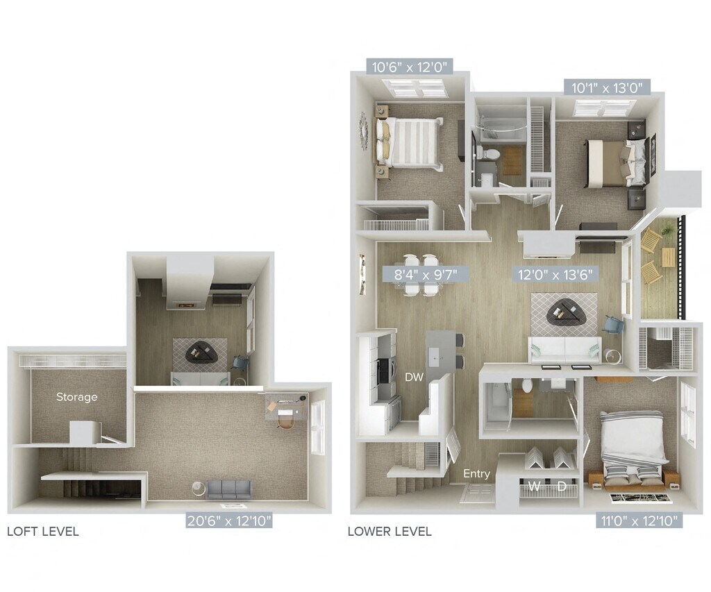 2 Beds, 2 Baths, 1115 sq ftModel Gallery