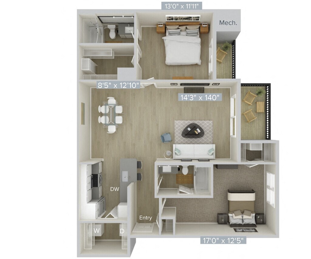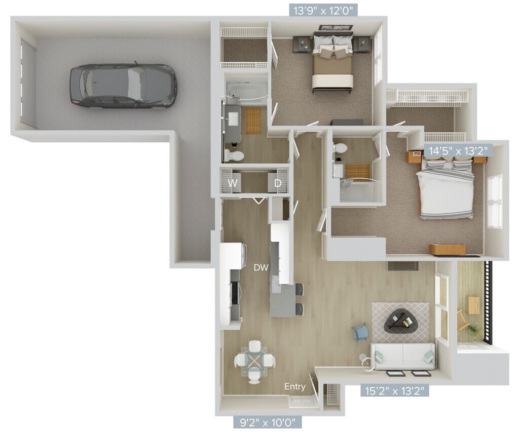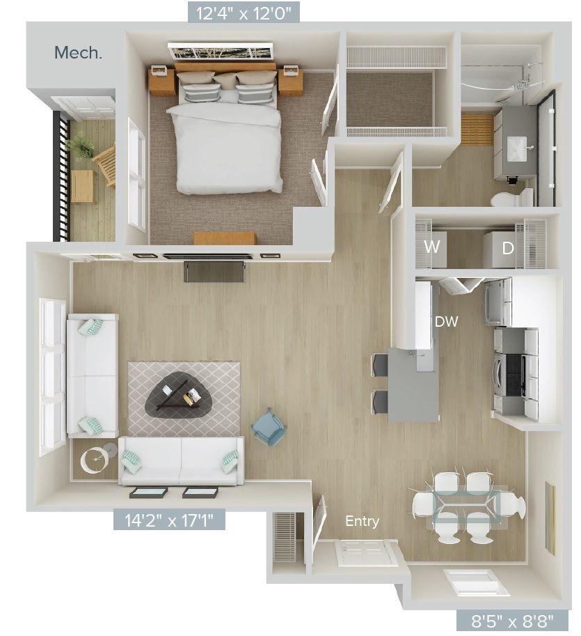 Apartment Model: AD2Call For Rates1 Bedroom, 1 Bath, 857 sq ftUnavailableFloor plans are artist's rendering. All dimensions are approximate. Actual product and specifications may vary in dimension or detail. Not all features are available in every rental home. Prices and availability are subject to change. Base rent is based on monthly frequency. Additional fees may apply, such as but not limited to package delivery, trash, water, amenities, etc. Deposits vary. Please see a representative for details.