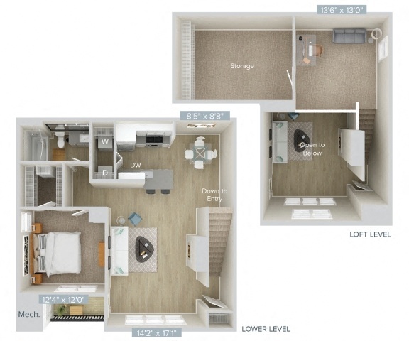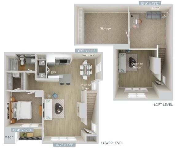 1 Bed, 1 Bath, 857 sq ftModel Gallery