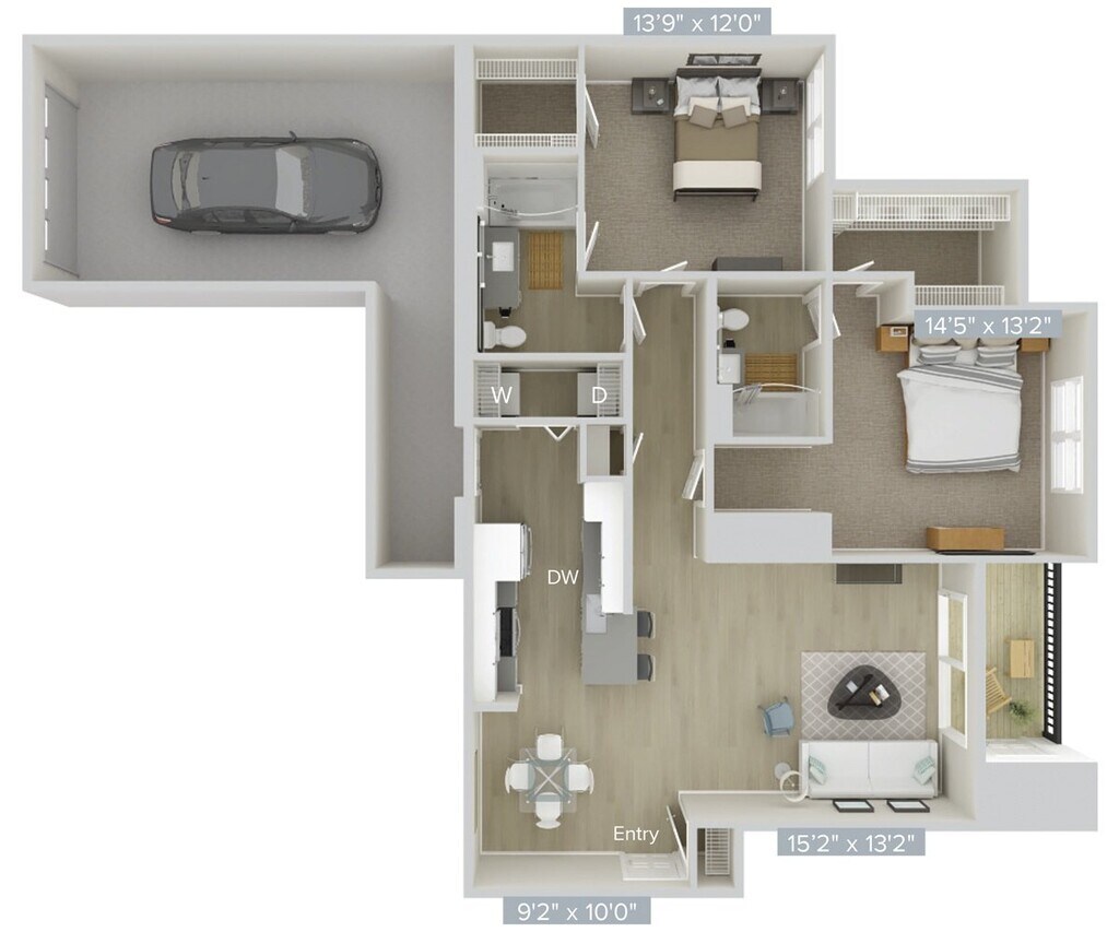 Apartment Model: AD2LCall For Rates1 Bedroom, 1 Bath, 1159 sq ftUnavailableFloor plans are artist's rendering. All dimensions are approximate. Actual product and specifications may vary in dimension or detail. Not all features are available in every rental home. Prices and availability are subject to change. Base rent is based on monthly frequency. Additional fees may apply, such as but not limited to package delivery, trash, water, amenities, etc. Deposits vary. Please see a representative for details.