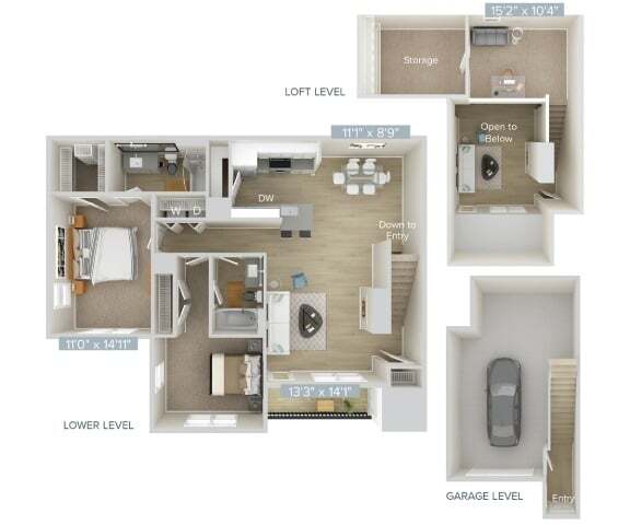 2 Beds, 2 Baths, 1115 sq ftTotal Monthly PriceAvailable NowModel Gallery