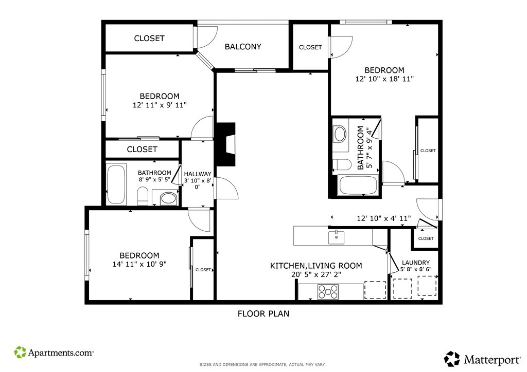 BD1 - Image 3 Floor plans are artist's rendering. All dimensions are approximate. Actual product and specifications may vary in dimension or detail. Not all features are available in every rental home. Prices and availability are subject to change. Base rent is based on monthly frequency. Additional fees may apply, such as but not limited to package delivery, trash, water, amenities, etc. Deposits vary. Please see a representative for details.