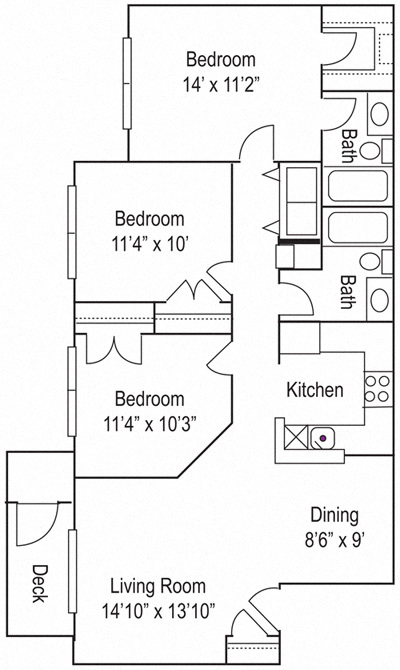 3 Beds, 2 Baths, 1295 sq ftLargest 3 BedroomThis is the largest 3 Bedroom at this PropertyAvailability Details