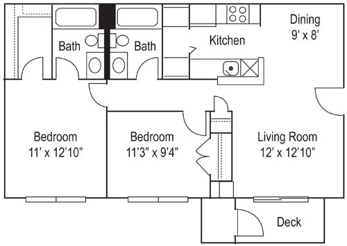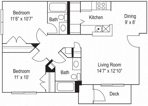2 Beds, 2 Baths, 896 sq ftLargest 2 BedroomThis is the largest 2 Bedroom at this PropertyModel Gallery