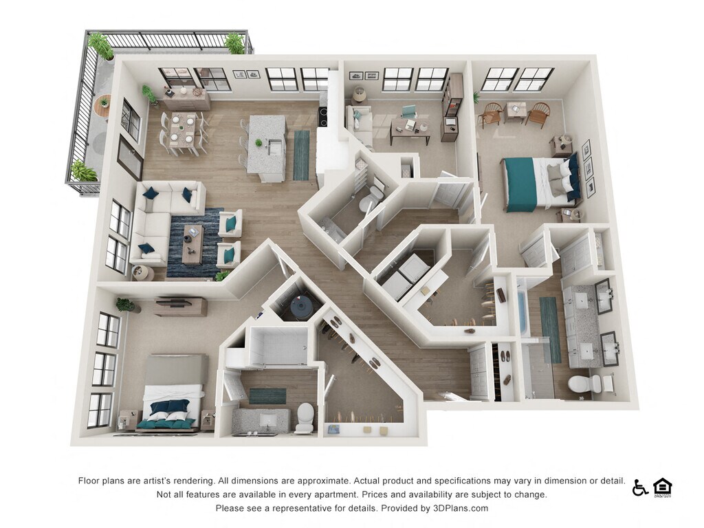 Apartment Model: A3From $2,0051 Bedroom, 1 Bath, 729 sq ftAvailable Now![]()