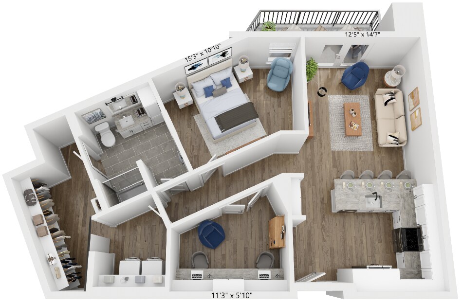 Studio, 1 Bath, 615 sq ftModel Gallery