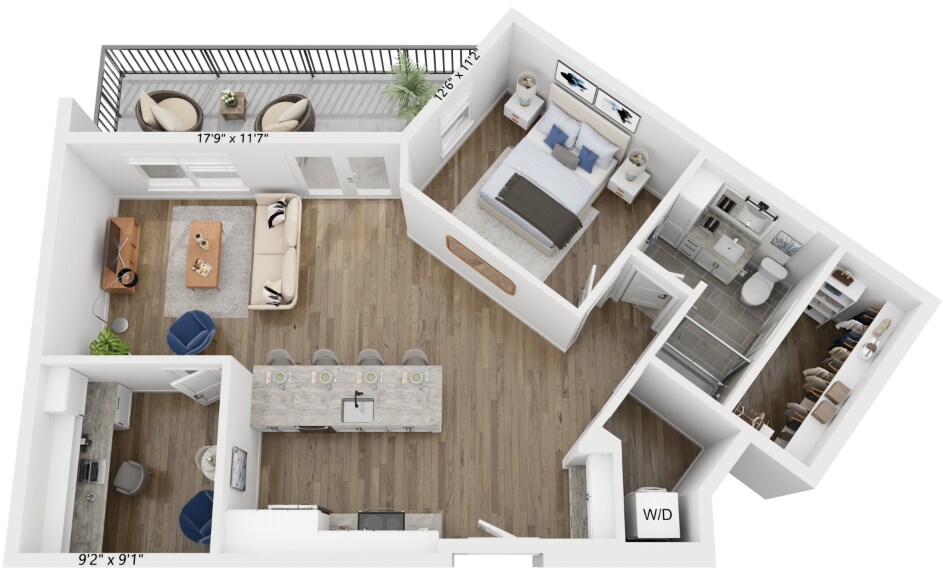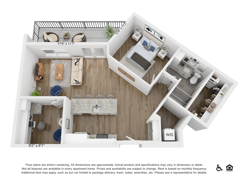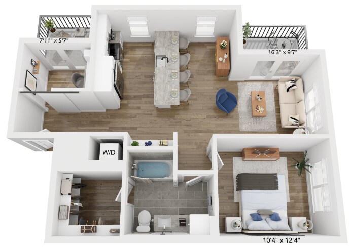Apartment Model: A7From $1,9351 Bedroom, 1 Bath, 739 sq ftAvailable NowFloor plans are artist's rendering. All dimensions are approximate. Actual product and specifications may vary in dimension or detail. Not all features are available in every rental home. Prices and availability are subject to change. Base rent is based on monthly frequency. Additional fees may apply, such as but not limited to package delivery, trash, water, amenities, etc. Deposits vary. Please see a representative for details.