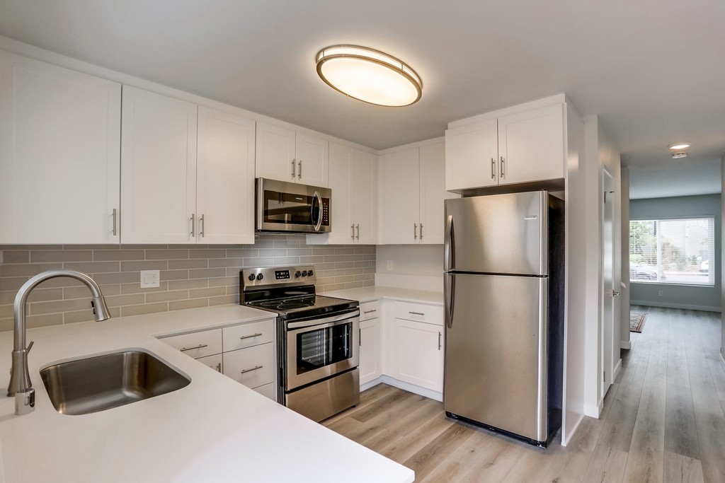 Beautifully Remodeled in 2019 – Absolutely Gorgeous remodel includes most units having private spacious patios with new fence (except Units G, &H), most units have fireplaces (except the two houses). All have been updated with new stainless steel appliances, new hardwood look floors, beautiful new cabinets and quartz counter tops, new windows, tiled showers and more!