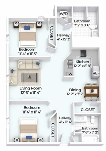 Two Bed/Two Bath - Floorplan 11 Apartment Unit: 13373-4Apartment Model: Two Bed/Two Bath$1,3502 Bedroom, 2 Bath, 925 sq ftAvailable April 8, 2026