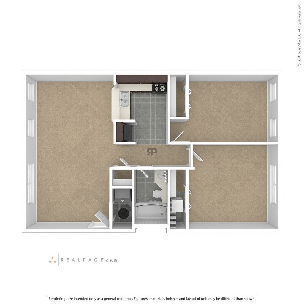 Two Bedroom - B - Floorplan 4 Apartment Unit: 1Apartment Model: Two Bedroom - B2 Bedroom, 1 Bath, 1025 sq ftAvailable NowTwo Bedroom - A