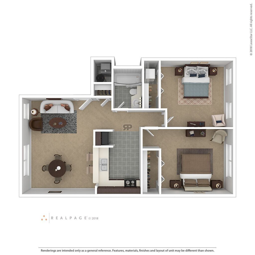 Apartment Model: Two Bedroom - B2 Bedroom, 1 Bath, 1025 sq ftAvailable Now![]()
