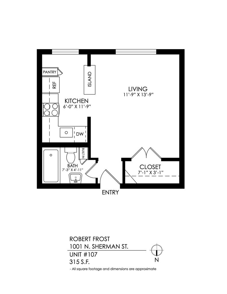 Robert Frost offers Studio to 2 Bedroom apartments starting from $899 and having 315–850 sq ft. Here is the current pricing and availability: