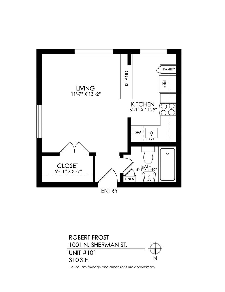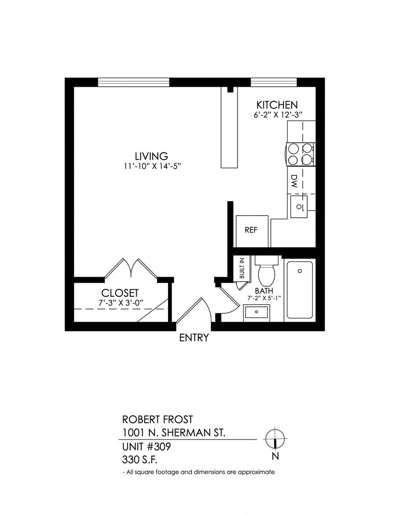 Studio - Image 2 Floor plans are artist's rendering. All dimensions are approximate. Actual product and specifications may vary in dimension or detail. Not all features are available in every rental home. Please see a representative for details.