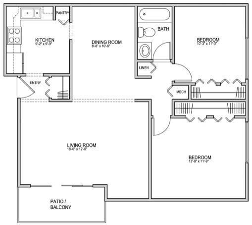 Apartment Model: Robin Oaks - B012 Bedroom, 1 Bath, 950 sq ftAvailable Now![]()