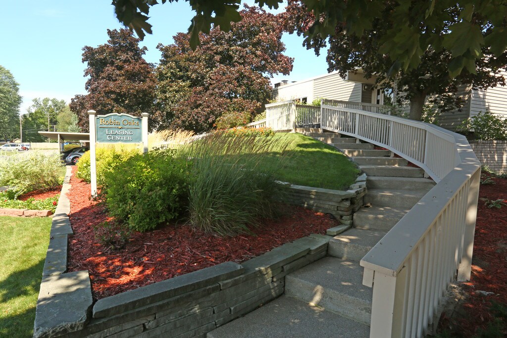 Robin Oaks is located in a secluded neighborhood setting with beautifully landscaped grounds. We are within walking distance to the Dow Corporate Center and 10 minutes from Downtown Midland, the Community Center and the Center for the Arts. Our outdoor heated swimming pool, sun deck and outdoor areas are perfect for entertaining. Our amenities are: Bundled low rate Gas/Heat & Water, 1 carport per apartment, FREE sister site gym membership, mailbox in building.