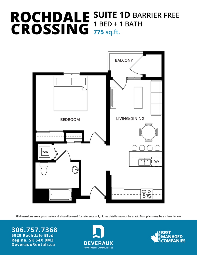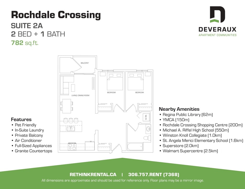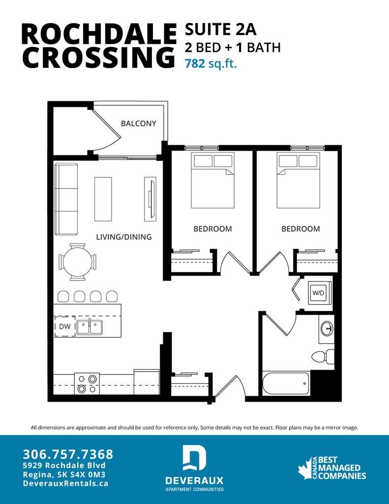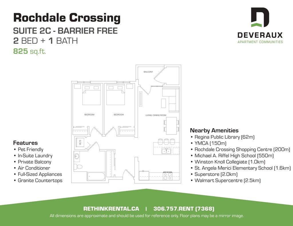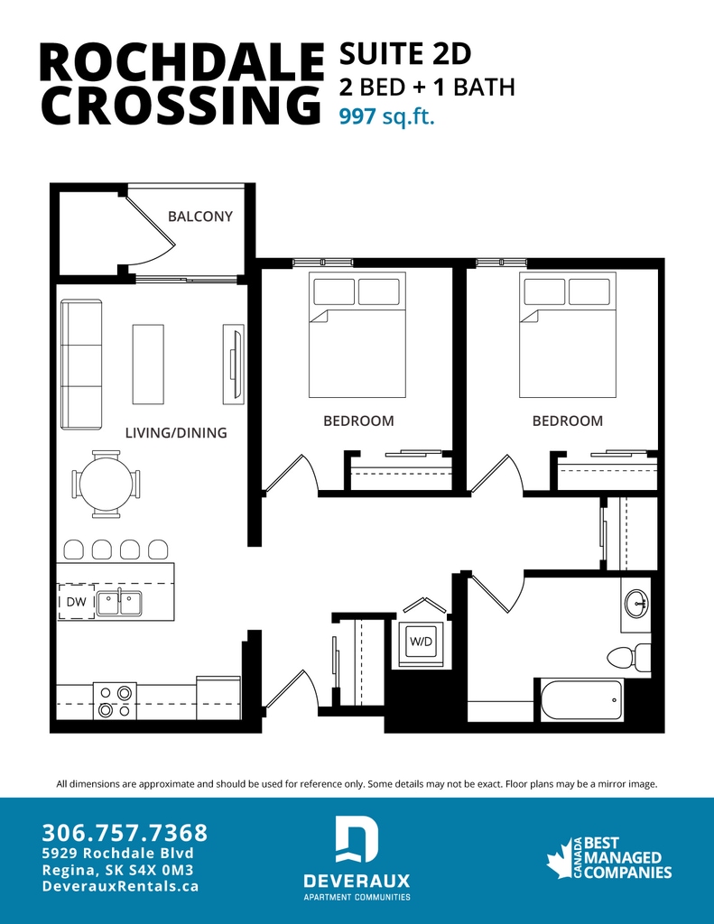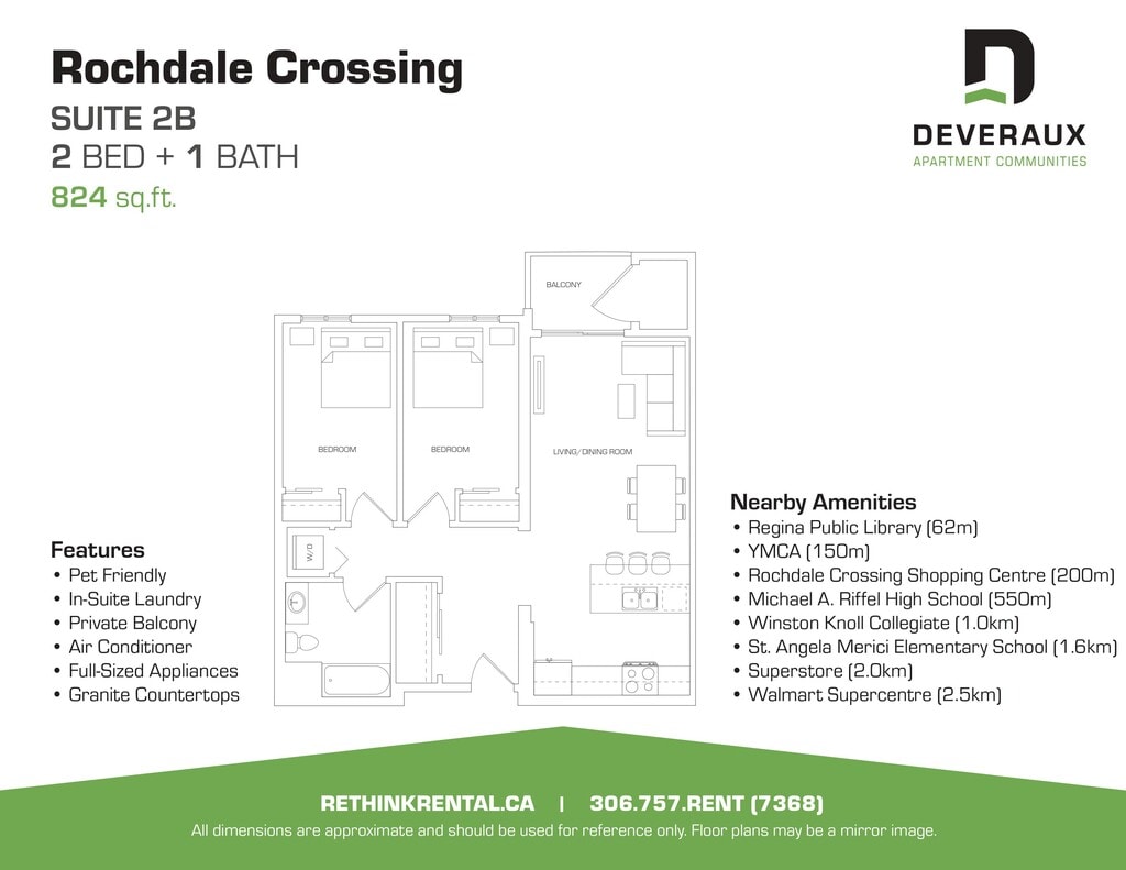 Rochdale Crossing has a variety of 1 bedroom, 1 bedroom plus den and 2 bedroom apartments for rent with air conditioning full size appliances (including dishwasher and microwave), in suite laundry, and upgraded contemporary finishes like granite countertops.Located on Rochdale Boulevard in northwest Regina. Rochdale Crossing is immediately adjacent to Rochdale Crossing Shopping Centre, allowing residents to enjoy the conveniences of nearby retail, food, and entertainment services. Proximal access to the Ring Road, Lewvan Drive and highway 11 make travelling to and from Rochdale Crossing easy.