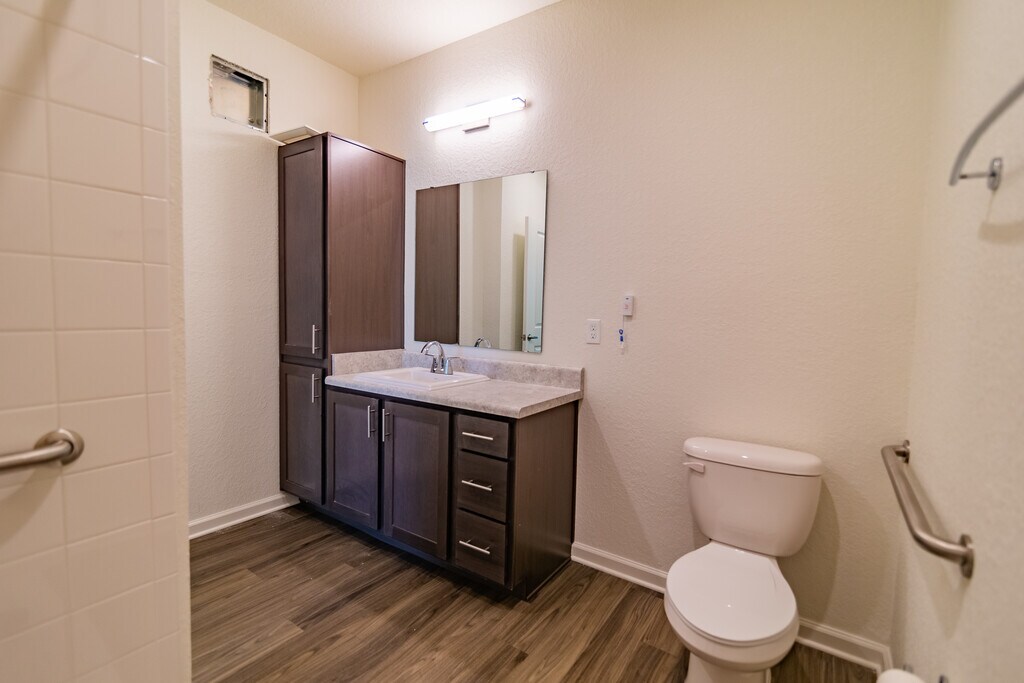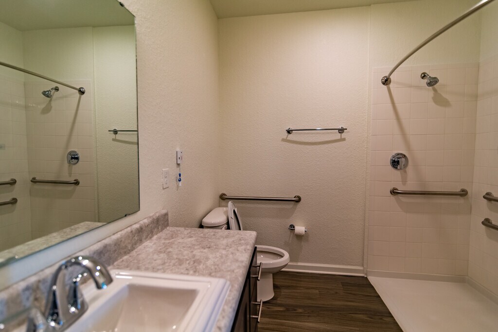 - One Bed - One Bath - Roll Shower - 60%1 Bed, 1 Bath, 679 sq ft- Availability Details- Availability Date - Unit - Sq Ft - Unavailable - One Bed - One Bath - Roll Shower - 60% - 679 sq ft - Model Amenities and Features- Features- Air Conditioning