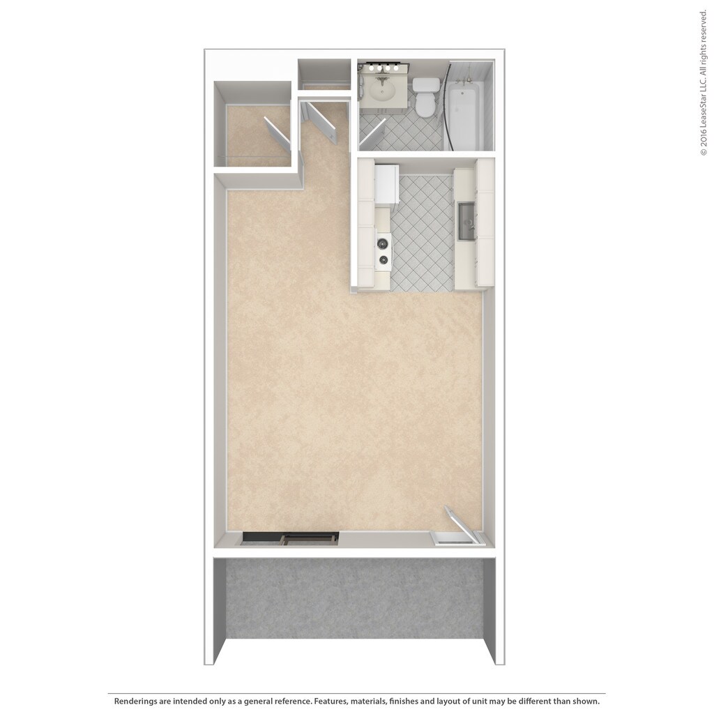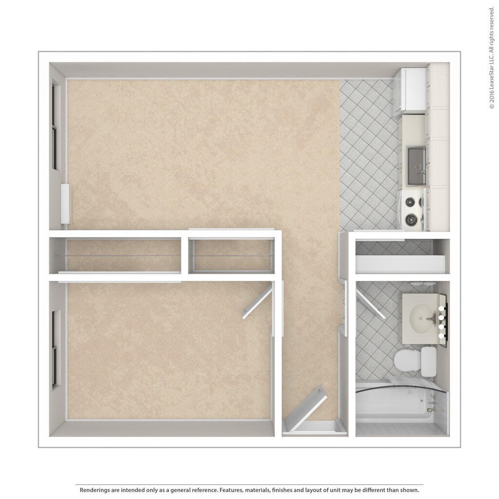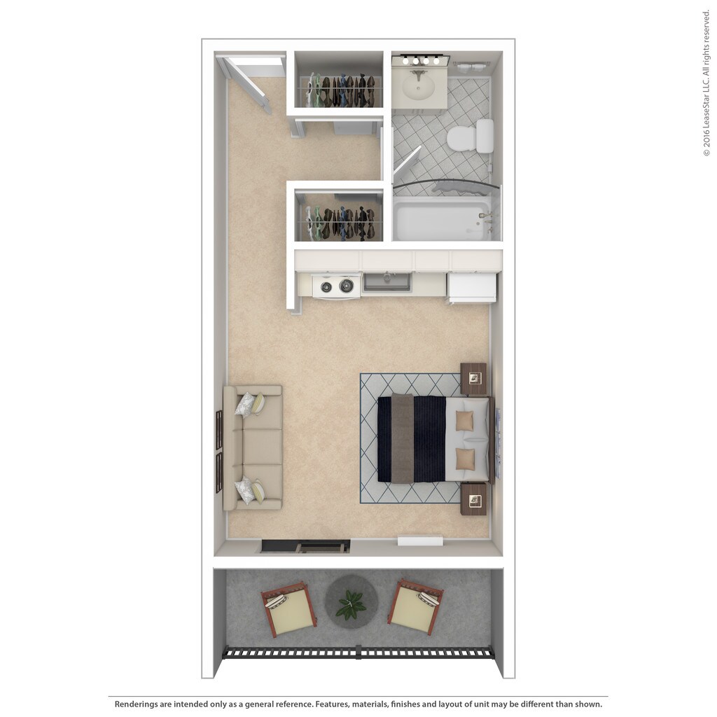 Studio, 1 Bath, 534 sq ftAvailable NowLargest StudioThis is the largest Studio at this PropertyModel Gallery
