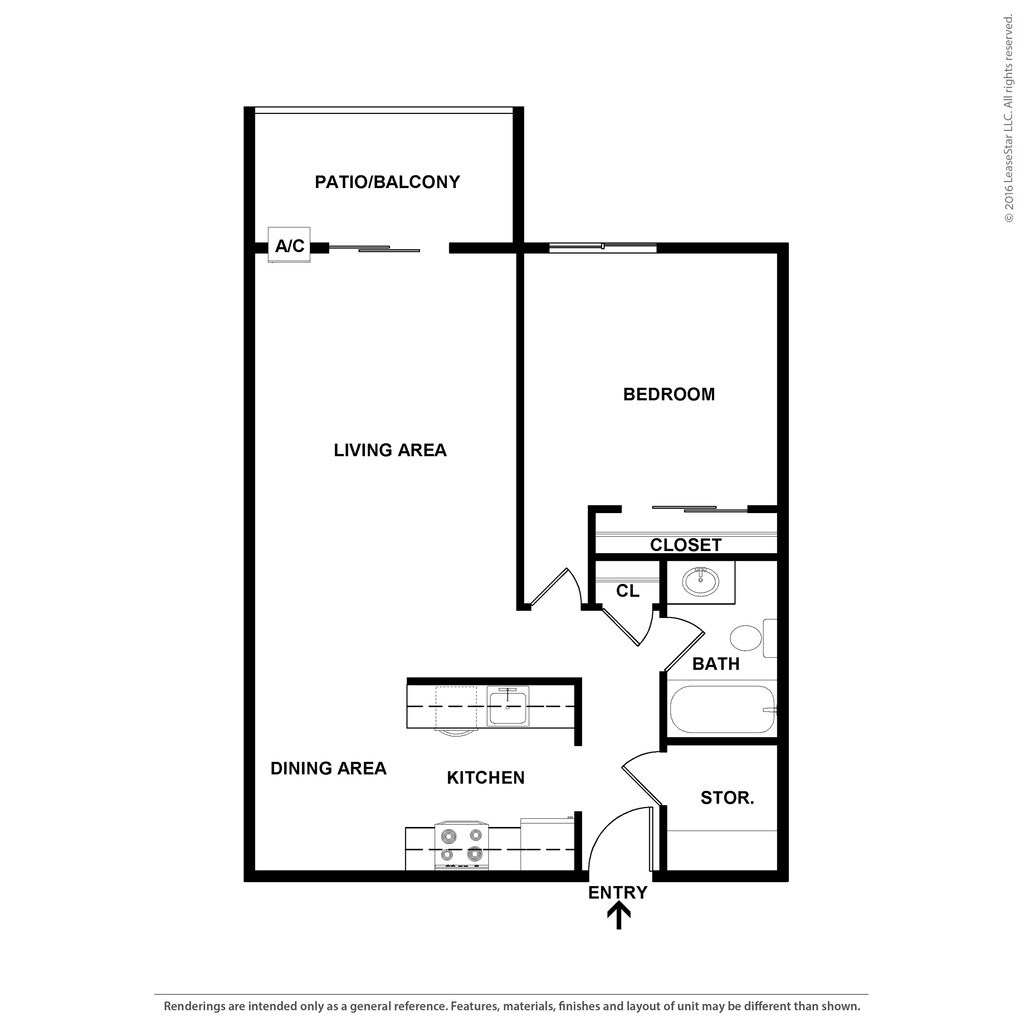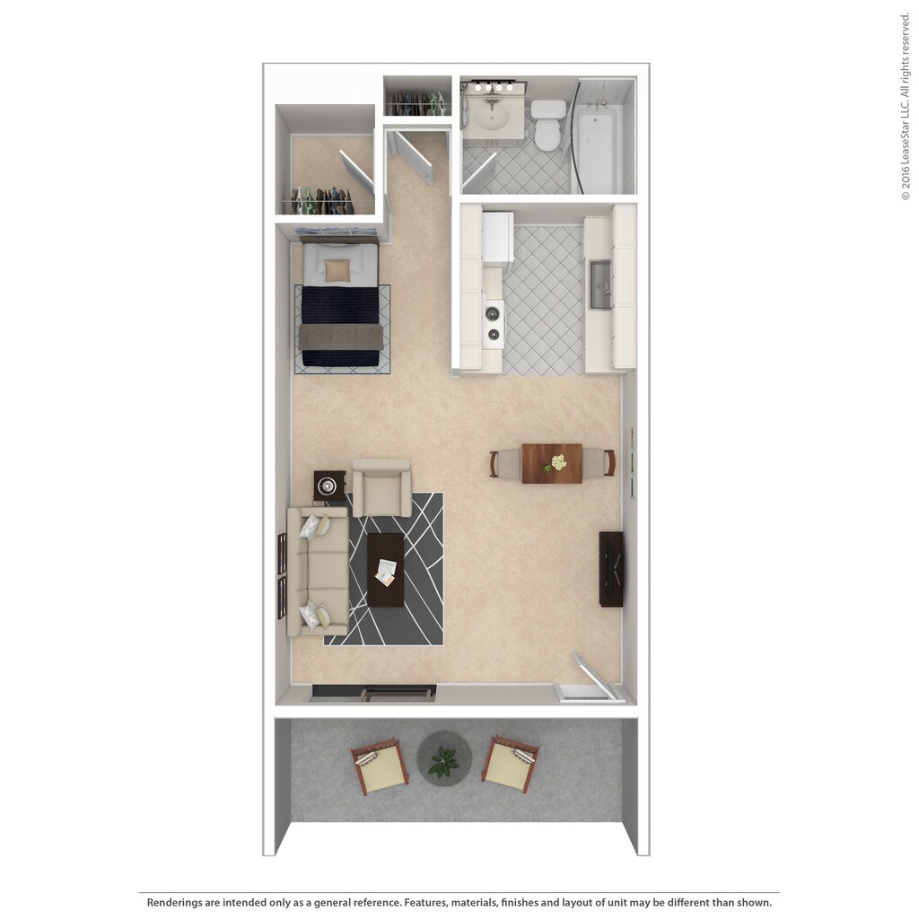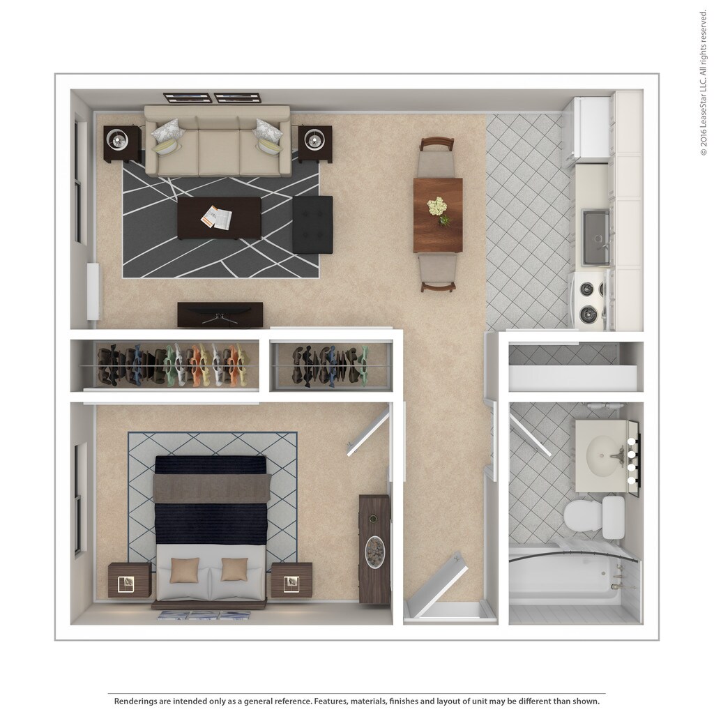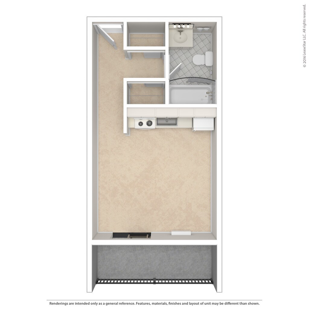 Studio, 1 Bath, 534 sq ftAvailable NowLargest StudioThis is the largest Studio at this PropertyModel Gallery
