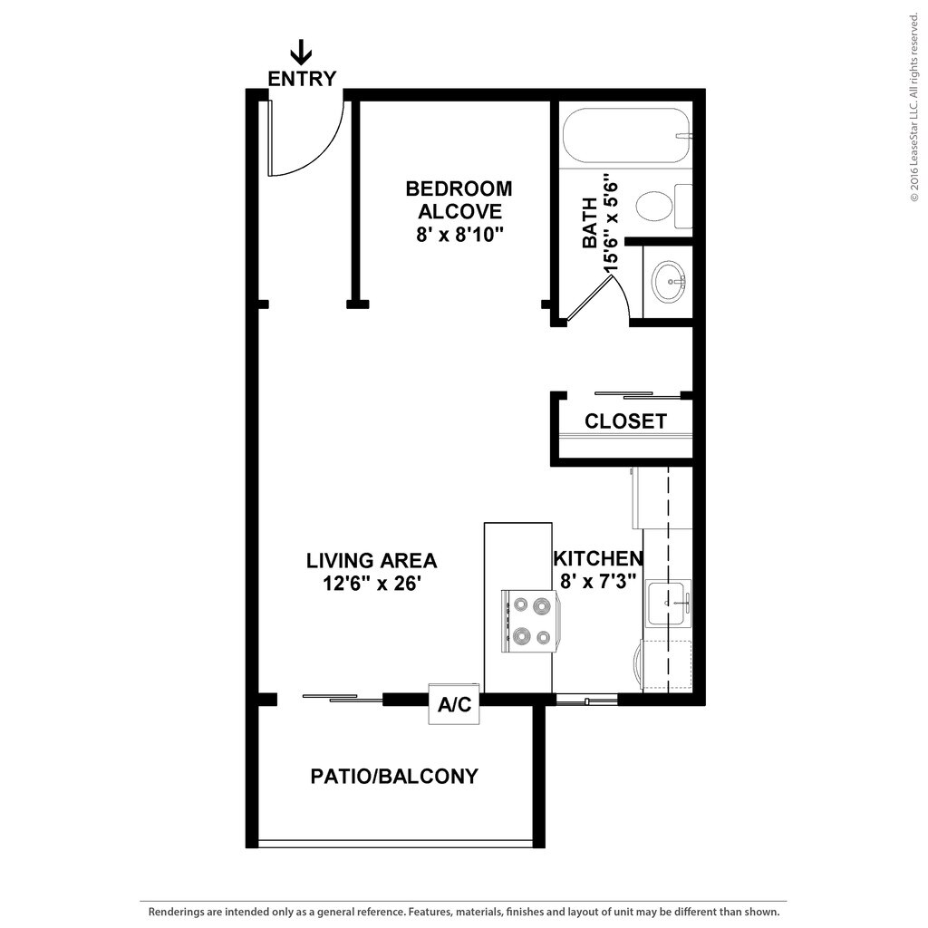 Studio, 1 Bath, 444 sq ftAvailable NowModel Gallery