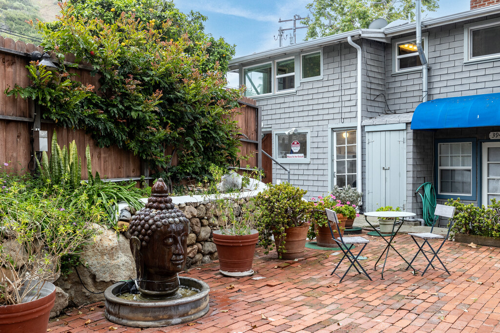 Rockhaven is in an idyllic location. The property sits on a lot with another lot which is a garden with fountain and another sunken garden for residents' use. A nursery is next door. Las Flores Creek runs behind the building. Las Flores Creek Park is just three homes down the street. There are various restaurants, Post Office, shops, and a beach access down the street.