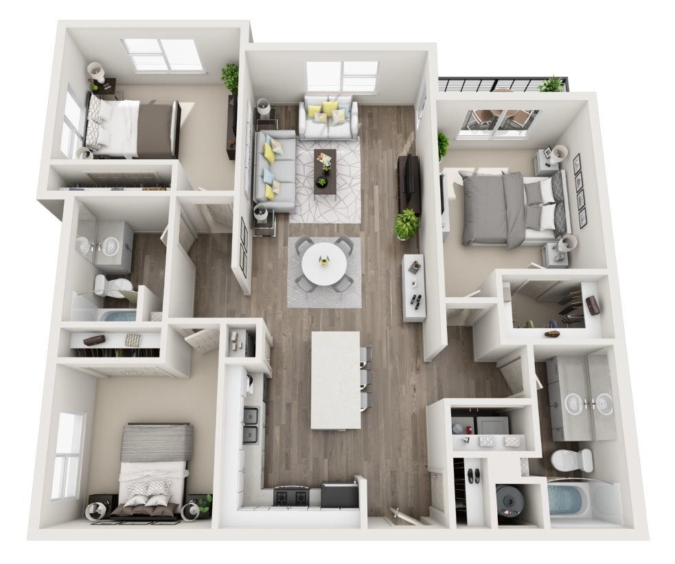 Studio to 3 Bedroom Apartments at Rockpoint Apartments currently range from $1,230 to $1,795