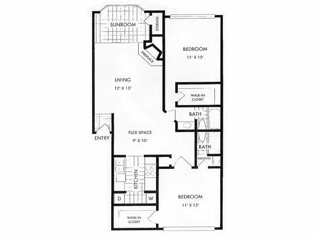 1x1 715 SF - Floorplan 2 2 Bedrooms
